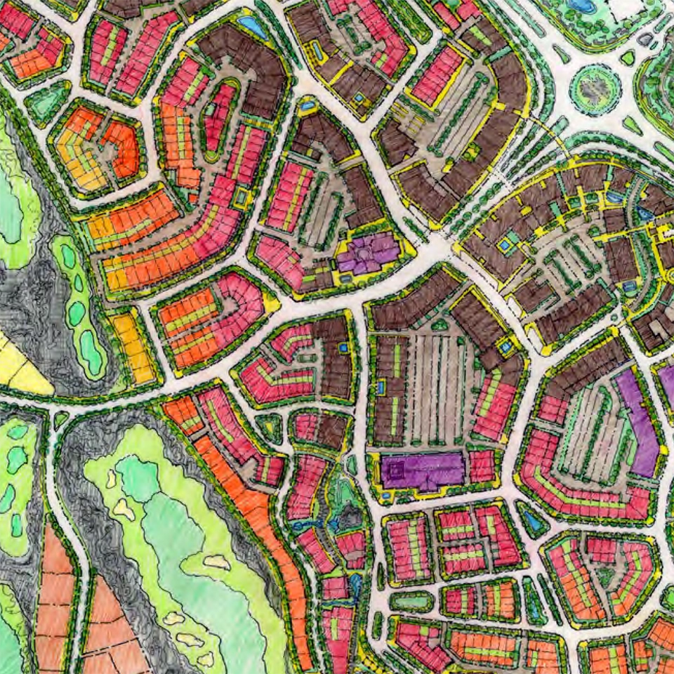 • RESIDENCES: Complementing an optimum intensity of the specific center, dwellings are smaller – with more attached and stacked types, often above ground floor businesses.