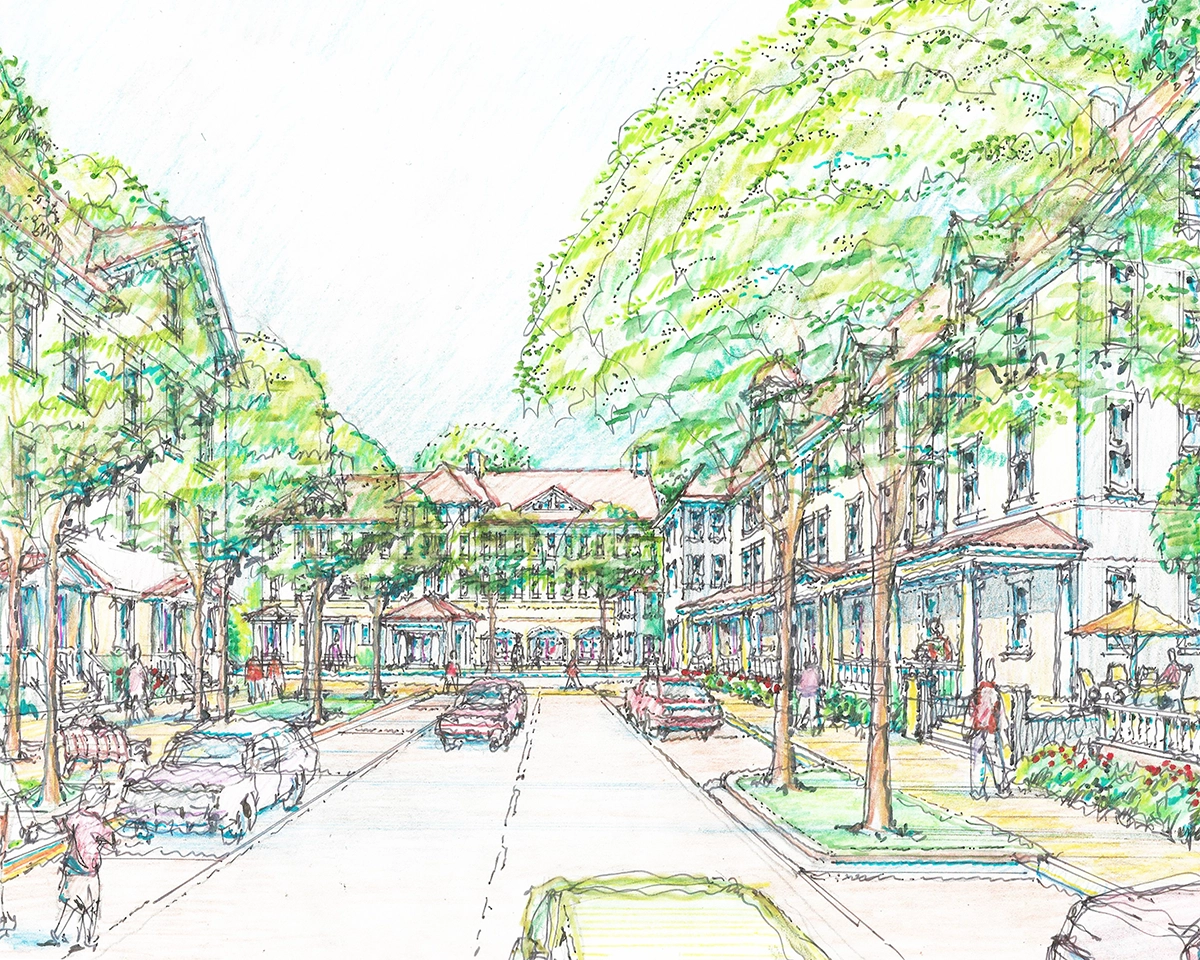 Program: Village, 5 neighb: 3,100 du, 1.0m sf comm.