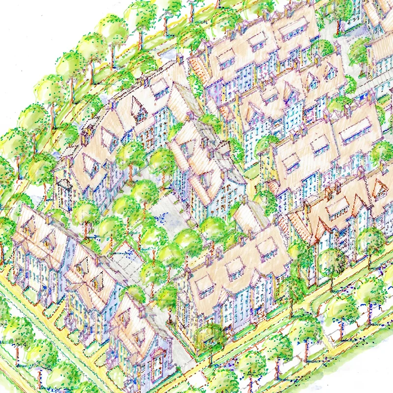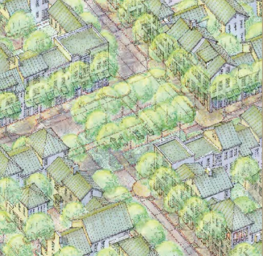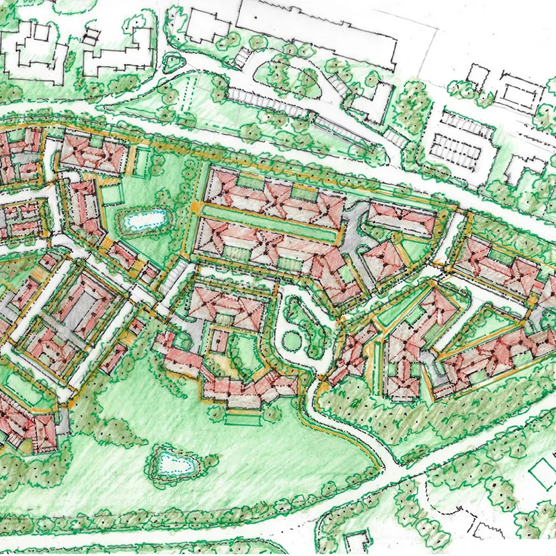 • Central greens, commercial retail
